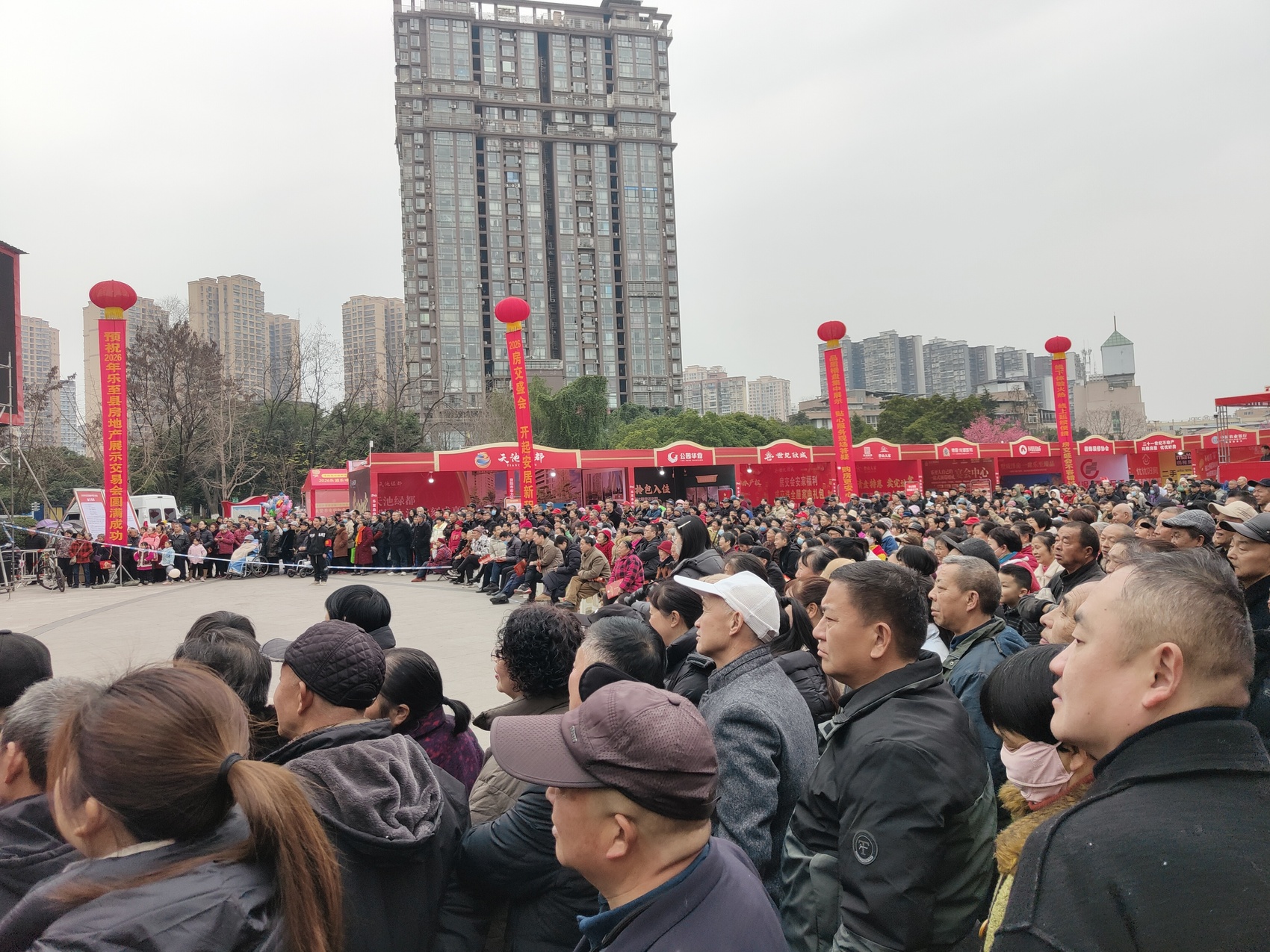 2月7日上午,乐至县陈毅广场细雨轻飘,却并未浇熄群众的热情。临时搭起的舞台前围满了人,里三层外三层,比往日更显热闹。
