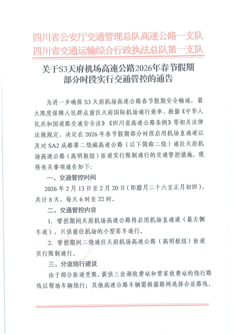 为进一步提升道路通行安全与效率,根据相关法律法规及技术标准,S2成巴高速公路成德南段(K15+730M-K194+150M)将实施限速优化调整,敬请广大驾驶员知悉并遵守。