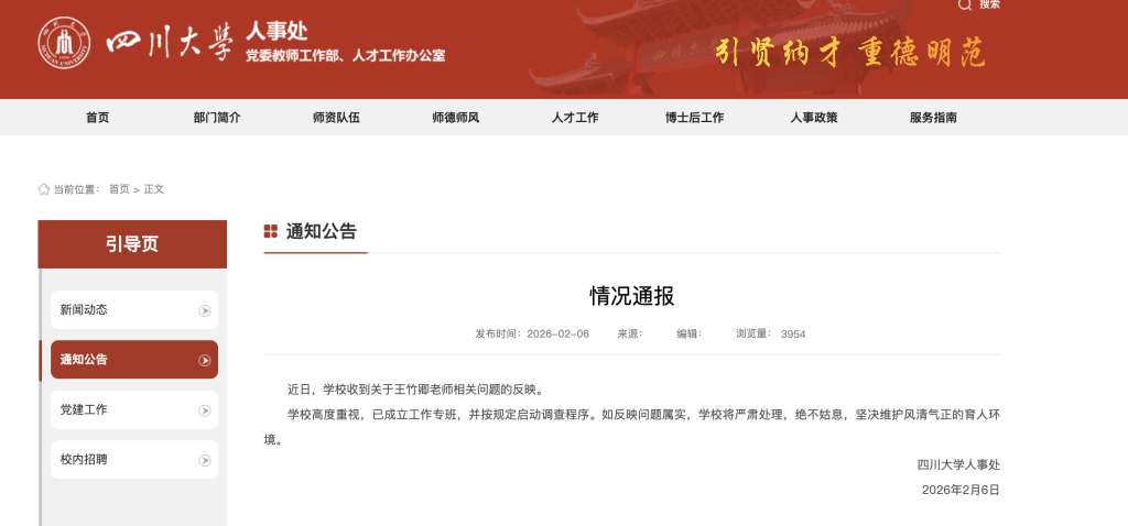2月6日,四川大学发布公告: