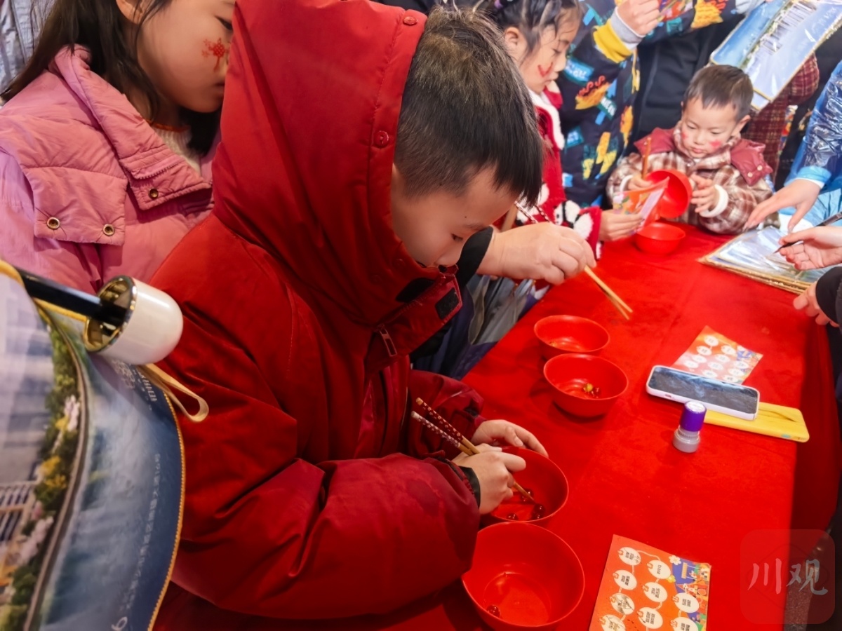 游园区域更是笑声不断。夹弹珠、蒙眼击鼓、新年脸绘等经典游戏前围满了大小朋友,便民服务区提供健康咨询、义剪等暖心项目,而写春联、拓福字等文化摊位则飘散着墨香与祝福。其中,“七雅美食”品鉴区人气尤旺,居民们在品尝本土特色美味的同时,也感受到“雨城味道”里蕴含的温情。