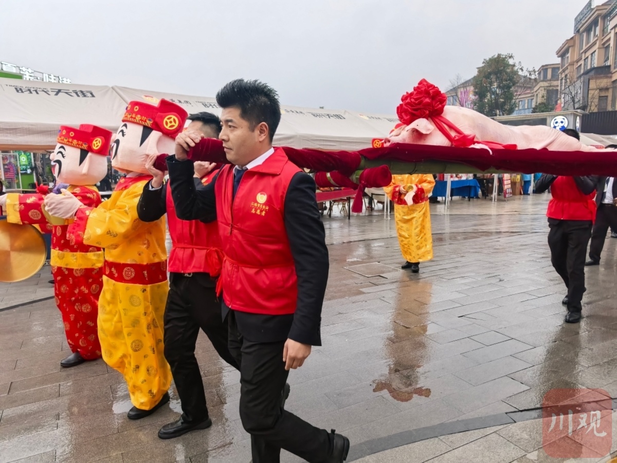 活动在充满传统仪式感的“抬年猪”巡游中拉开序幕。一头头戴大红花的年猪,在锣鼓声中喜气洋洋地被迎到舞台中央,瞬间点燃全场氛围,也为后续的抽奖环节埋下趣味伏笔。现场节目演出精彩纷呈,更有多位现场观众主动登台展示才艺,欢声笑语此起彼伏。