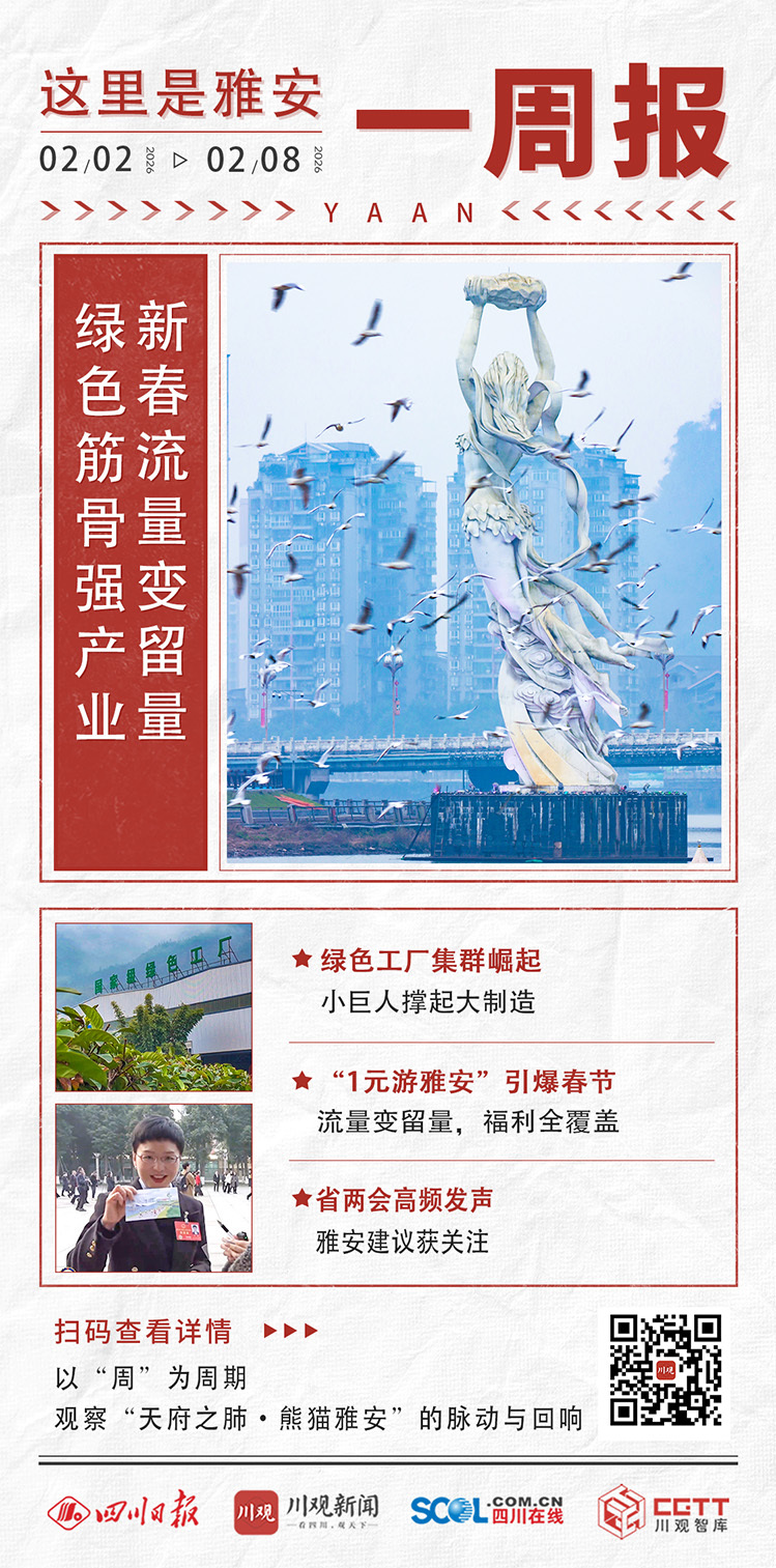 2月2日至8日,是2026年的第五周。雅安以绿色工厂集群夯实制造根基,以“1元游雅安”引爆春节文旅消费,在省两会上积极发出雅安声音,推动生态价值、产业动能与民生福祉在新春开局之际同频共振。锻造成高质量发展的主色。