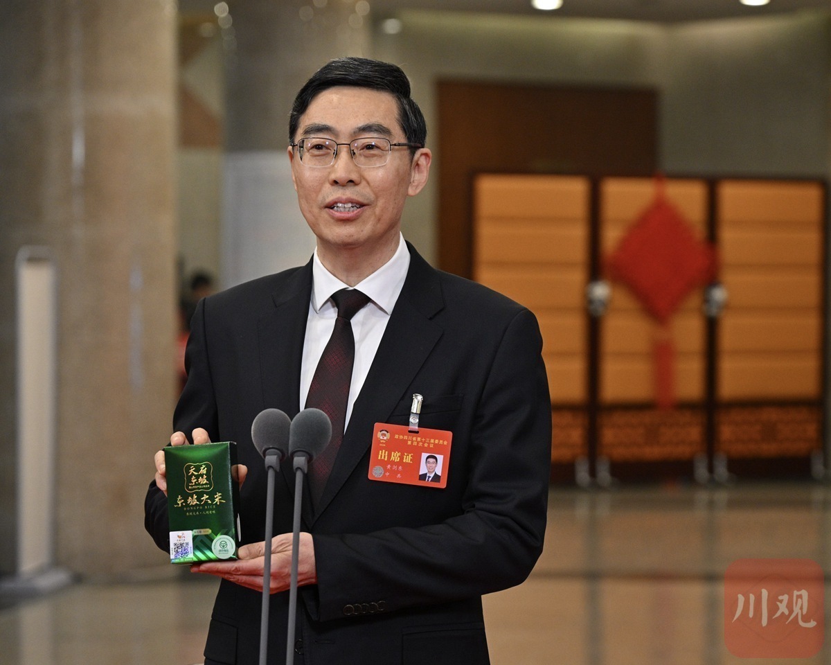 “最香特产”的出圈瞬间,来自省政协委员、眉山市政协主席黄剑东掏出的一袋东坡大米。