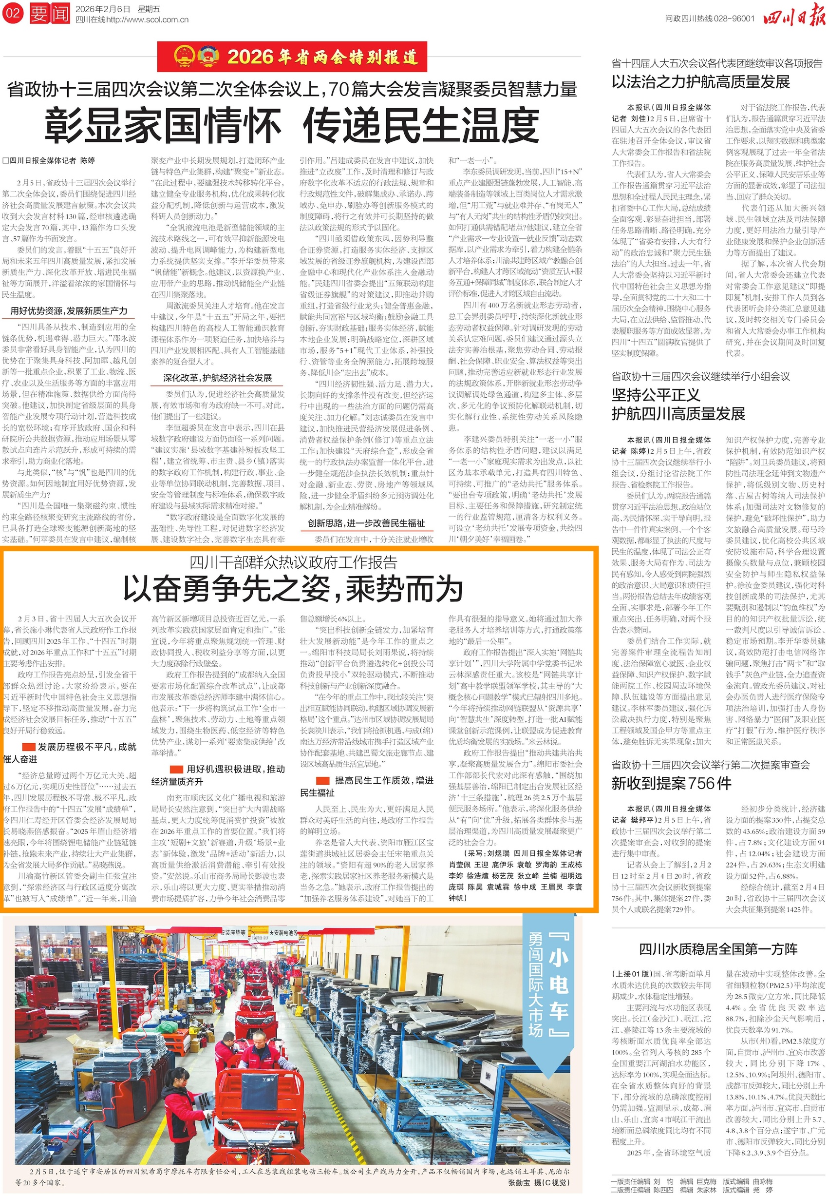 此外,在对政府工作报告的热议中,四川仁寿经开区管委会经济发展局局长易晓燕的感悟,道出了眉山基层干部的心声。在她看来,2025年眉山经济增速亮眼,成功跨入“2000亿俱乐部”。今年,仁寿县将着重内外兼顾,围绕锂电储能产业链延链补链,抢跑未来产业,持续壮大产业集群,为全省发展大局多作贡献。这不仅是个人感悟,更是眉山立足新起点、展现新作为的坚定决心与实干路径。