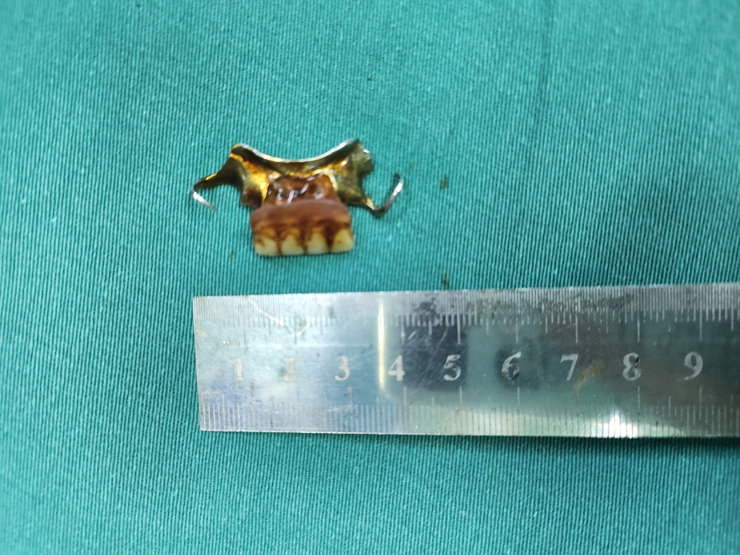取出的带钩假牙