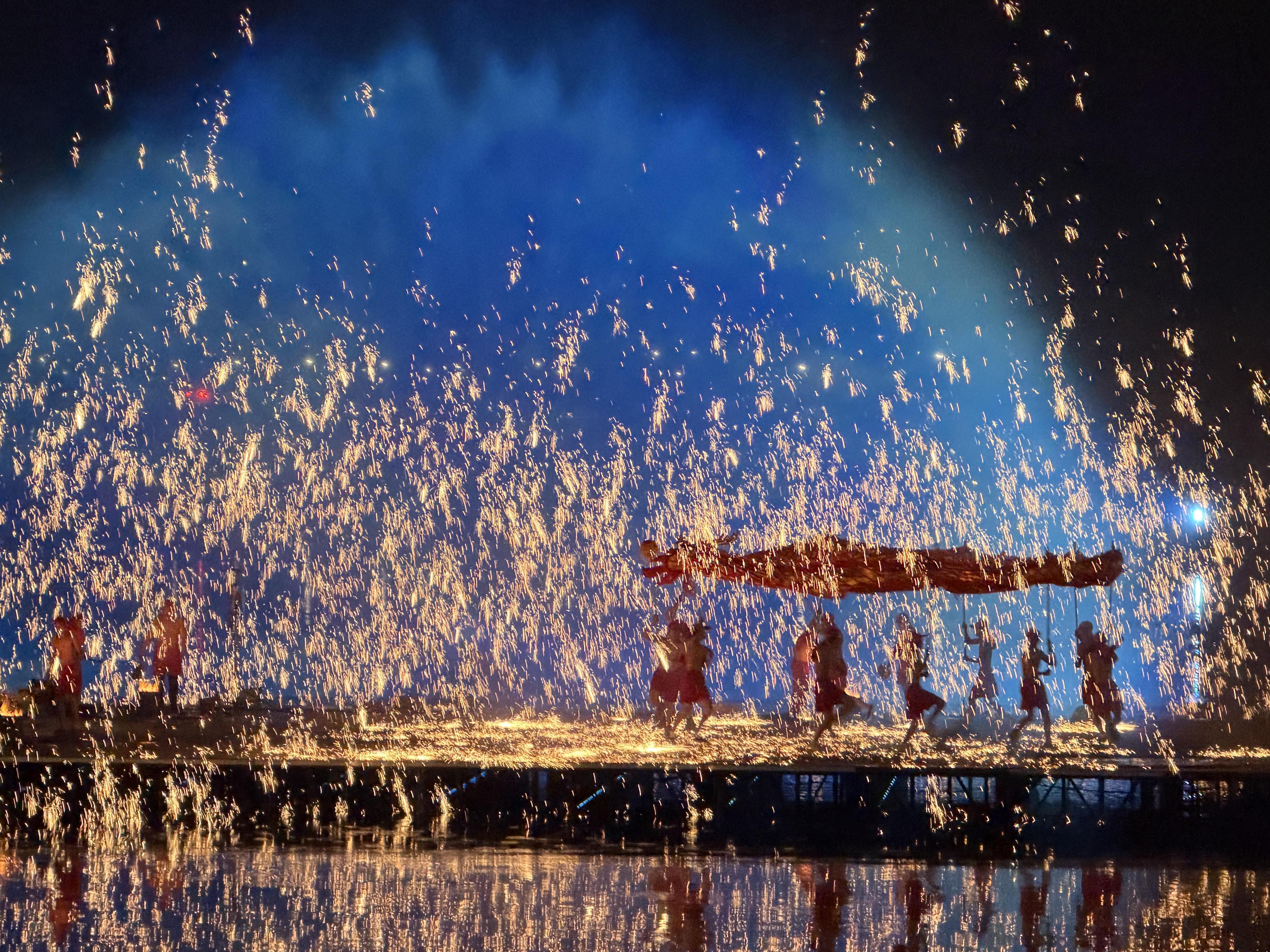 遥控直升机呼啸升空,极速完成俯冲、翻滚等炫酷动作,许多市民游客大饱眼福。