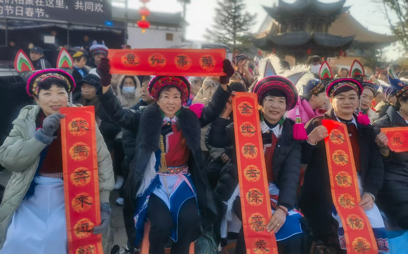 2月8日,云南剑川,剑阳楼广场上墨香弥漫、笑语盈盈。2026年全国“我们的节日·春节”主题文化活动在此启动,现场“联墨飘香迎新春·古韵新风颂文明”原创楹联诗词展示活动吸引着络绎不绝的群众。台上群星楹联拜年、童声合唱诵读、情景表演精彩纷呈,台下群众写福字、画门神、赏楹联、玩非遗,暖意融融。