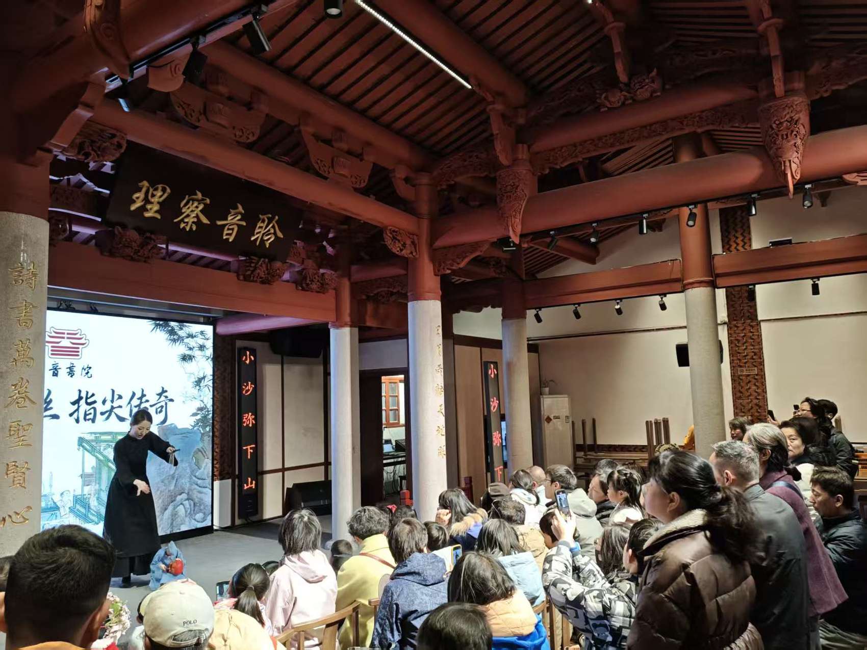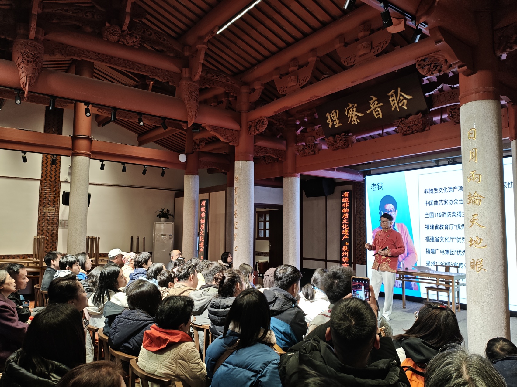 这是泉州市“非遗贺岁”新春公益非遗展演活动现场。春节前后,泉州市委宣传部策划推出“东方第一大港书院行”春节主题活动,在其中的非遗展演体验系列活动中,除正音书院外,泉州还将在欧阳书院、蔡襄书院、鳌江书院、鳌水书院分别举办非遗手作·书香祈福、梨园戏《陈三五娘》展演、“书院雅集”“非遗闹春”系列活动及“福狮踏春・马上有福”主题活动等,打造集历史体验、非遗传承、年俗互动于一体的新春文化盛宴。