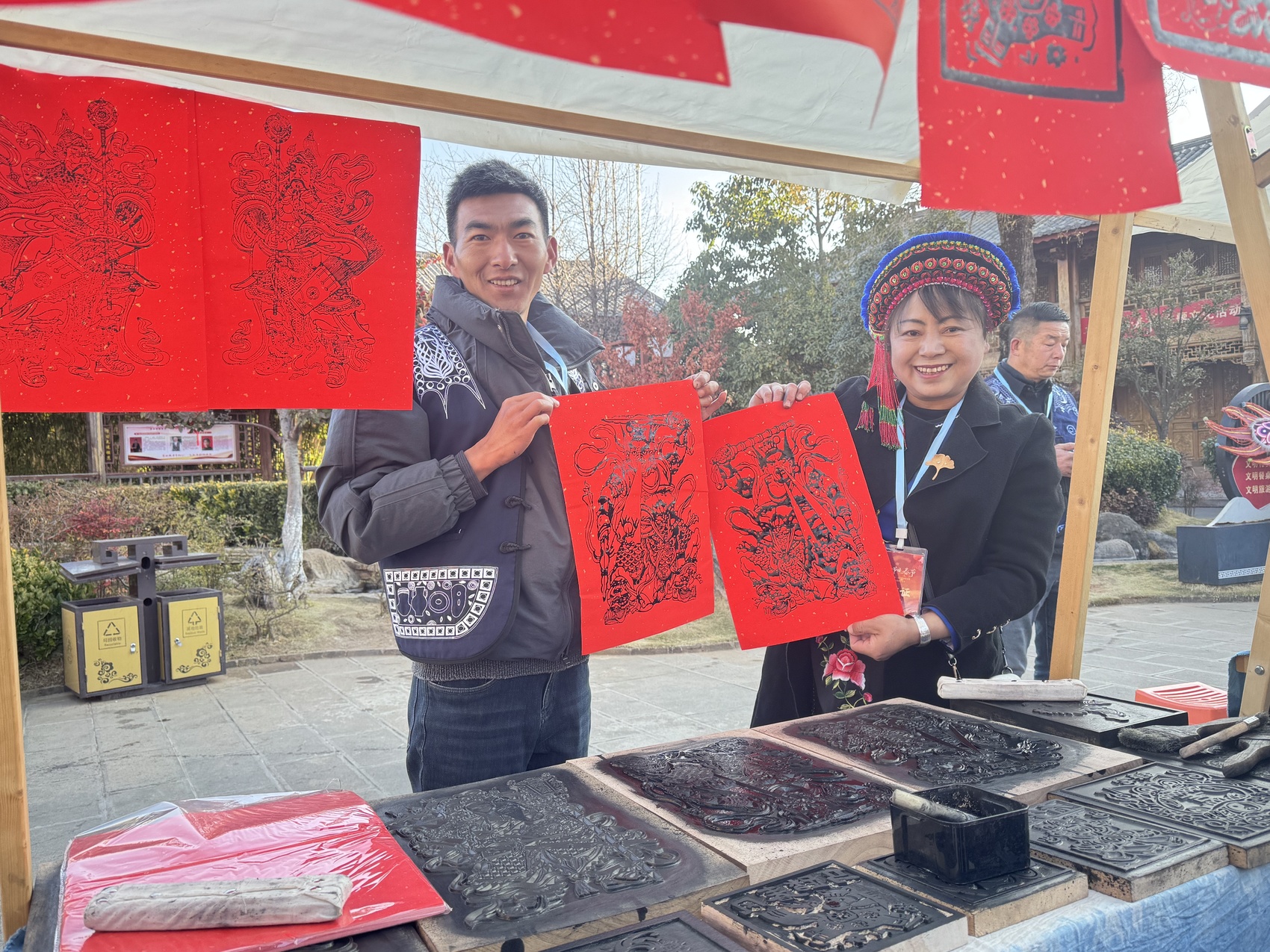 云南白族群众开心地展示领到的春联。胡桂芳 摄