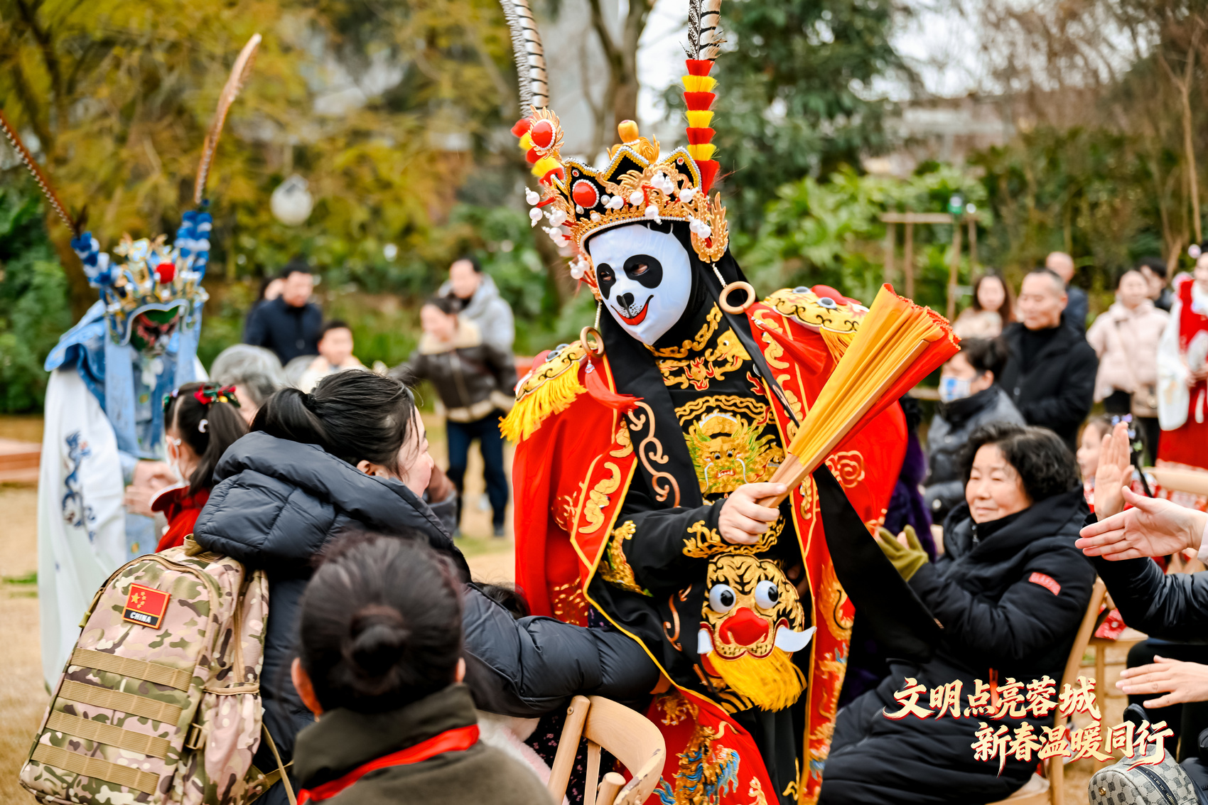 2月7日下午,四川成都国际非物质文化遗产博览园内暖意流淌,“文明点亮蓉城·新春温暖同行——我在文明实践中心过佳节”春节文明实践活动在此举行。软萌治愈的文明使者“蓉嘟嘟”首次线下亮相,引来市民争相合影;融合非遗、年俗与文明理念的“文明成都温暖华灯”场景中,古装NPC穿行其间,为市民送上文明倡议与定制红包;舞台上,川剧变脸、老成都春节民俗微讲座、倡导文明旅游的四川评书等节目,引来阵阵喝彩。一旁的“文明+非遗”新春市集里,编绳结、剪窗花等体验项目吸引市民踊跃参与;医疗、消防、助农等多个文明主题展位也人头攒动。