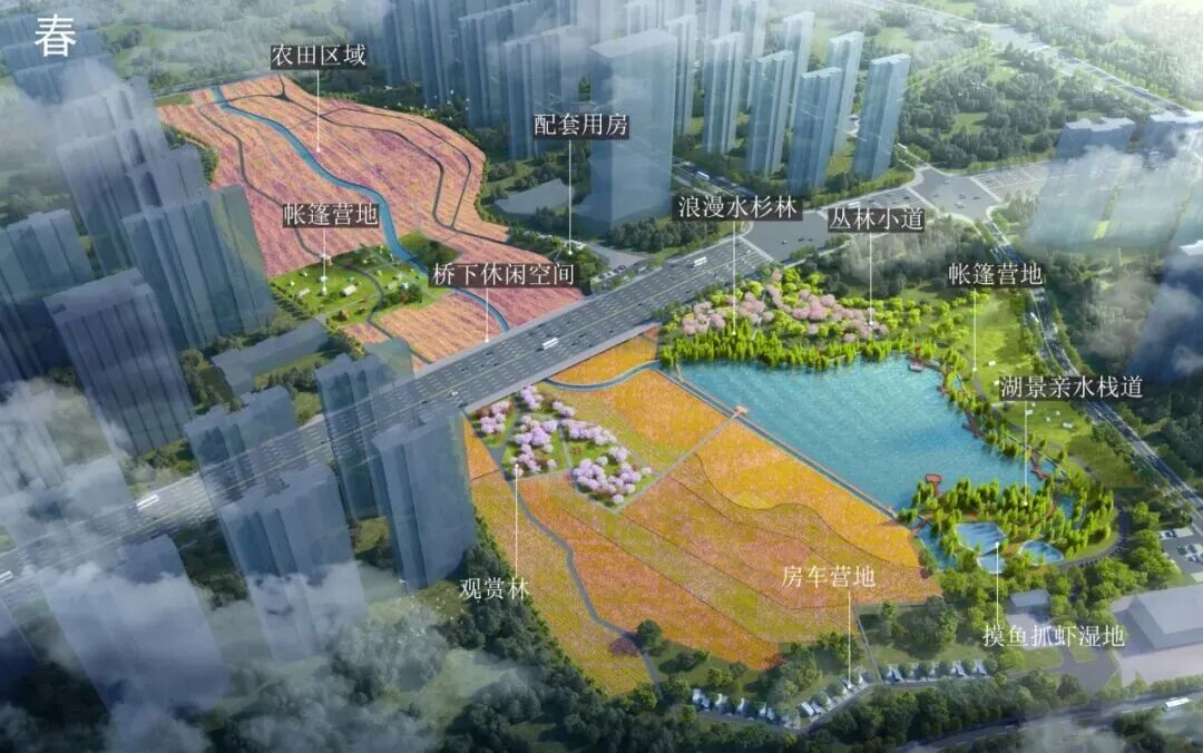 项目采用南北分区布局,南片区以休闲娱乐和花海景观为主,是亲近自然、拍照打卡的好去处;北片区保留连片稻田,还原传统农耕场景,还规划了科创稻田研学区,能沉浸式体验农耕乐趣。园内设置了登高塔,是观赏稻田全景的最佳点位,搭配以机耕道为主的特色路网,漫步其中,既能欣赏田园风光,又能感受乡村气息。