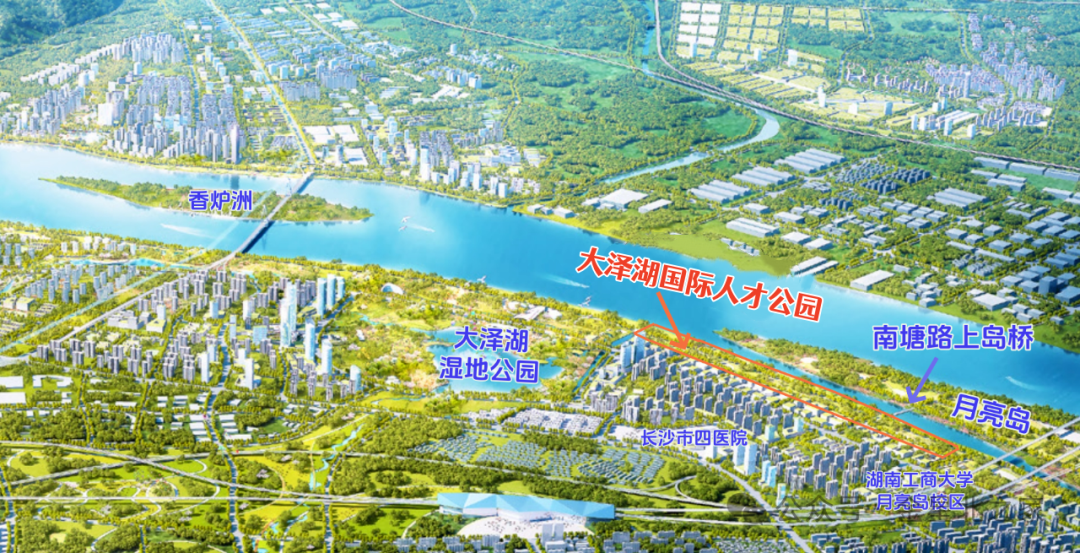 坐落在望城区大泽湖片区的大泽湖国际人才公园,一线临江,靠近月亮岛尾部,地理位置得天独厚,目前已基本建成,预计2026年春节后(2月左右)正式开放。公园前身为滨江体育公园,定位为青年友好型生态滨江公园,南北长约2千米、东西宽约80米,整体呈狭长型,与湘江仅隔一条潇湘大道景观道。