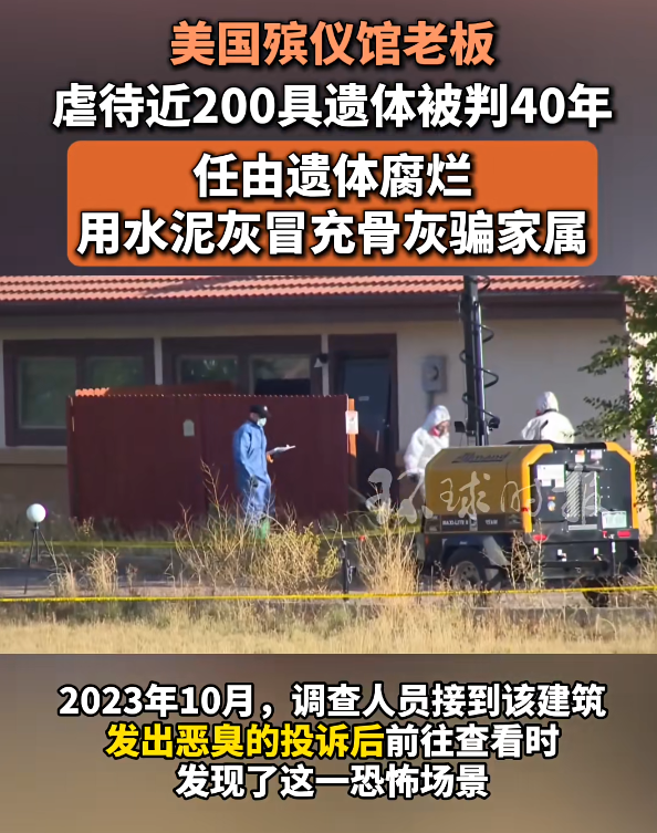 据新华社消息,美国科罗拉多州一家殡仪馆的老板将189具腐烂的尸体藏在一栋建筑内,并向死者家属提供假骨灰。6日,他因虐待尸体罪被判处40年监禁。