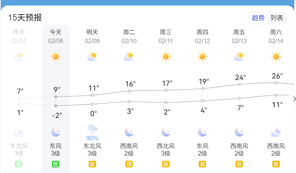 9日(周一):多云转阴,傍晚到夜里有小雨,-2~10℃,东风3~4级;