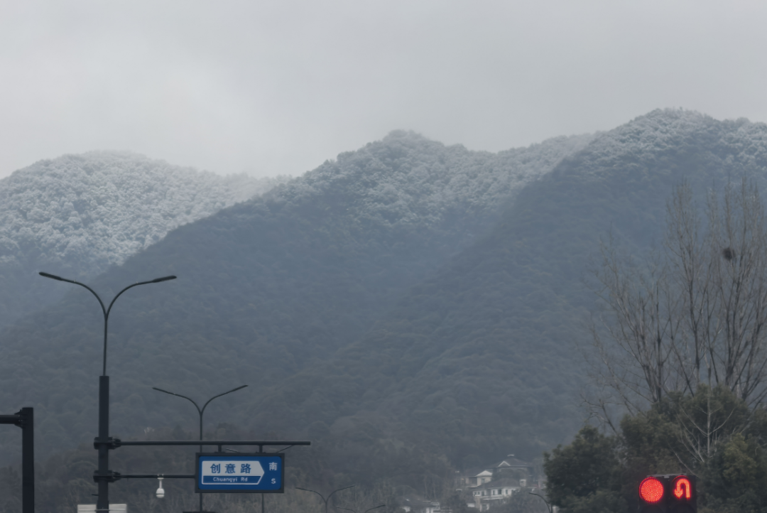 叠加周五的降雪,有人感叹:我居然在杭州看到了雪山。
