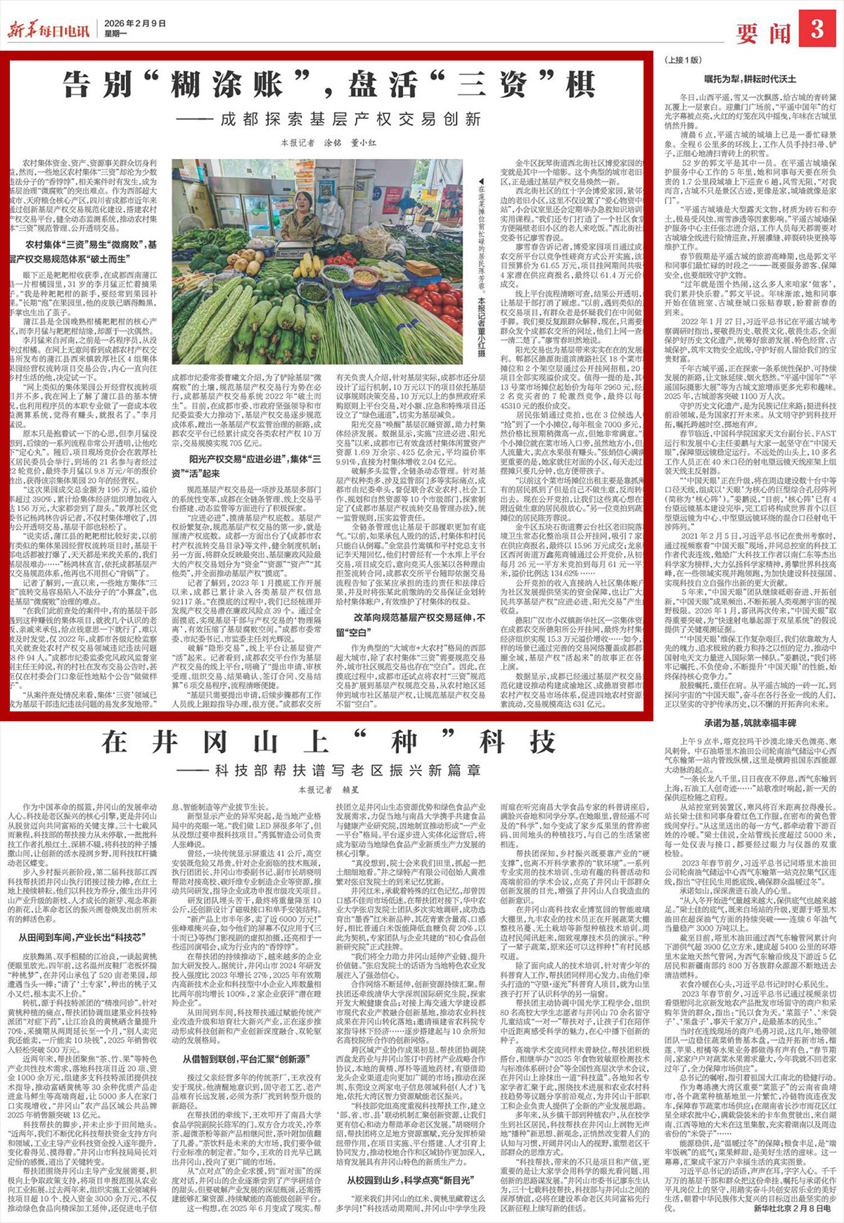 农村集体资金、资产、资源事关群众切身利益,然而,一些地区农村集体“三资”却沦为少数违法分子的“香饽饽”,相关案件时有发生,成为基层治理“微腐败”的突出难点。作为西部超大城市、天府粮仓核心产区,四川省成都市近年来通过创新基层产权交易规范化建设,搭建农村产权交易平台,健全动态监测系统,推动农村集体“三资”规范管理、公开透明交易。