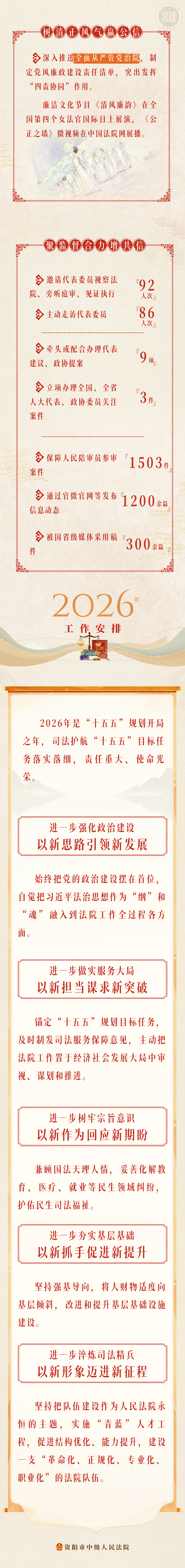 2025年,在市委坚强领导、人大有力监督、政府大力支持和政协民主监督下,资阳市法院系统坚持以习近平新时代中国特色社会主义思想为指导,全面贯彻党的二十大和二十届历次全会精神,深入贯彻习近平法治思想,认真落实市委决策部署和市人大会议决议,紧扣推进中国式现代化资阳实践履职尽责,做实为大局服务、为人民司法。