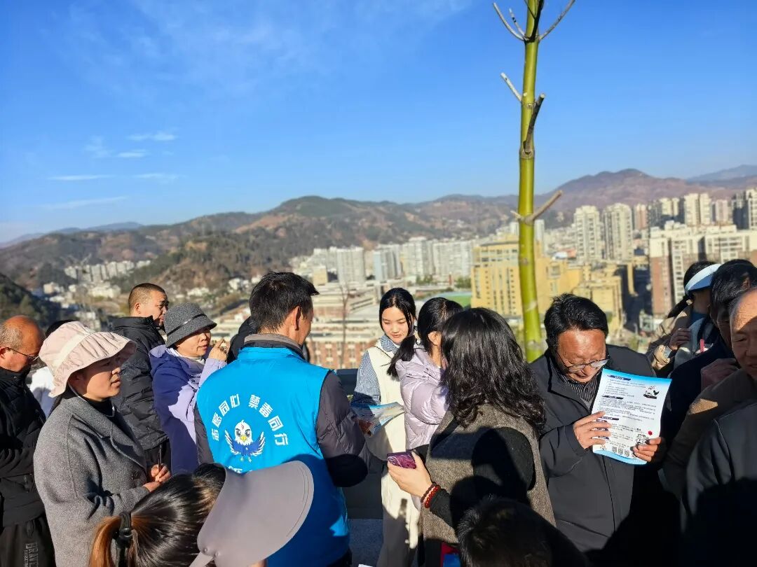 宣传并非单向输出,更重双向互动。禁毒志愿者在沿途及终点,以饱满的热情送上一句句“登山步步高,生活日日新,毒品切莫沾”的暖心倡导,与迎新登高的喜庆氛围完美融合。工作人员更鼓励登顶成功的群众,以健康活力的姿态在禁毒主题横幅前合影,将“战胜高峰”的成就感与“拒绝毒品”的健康承诺相结合,实现健康理念与禁毒意识双提升。
