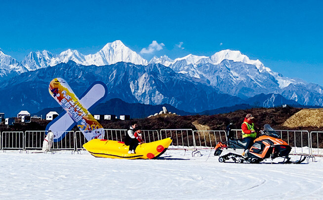 如今,山下的铭恩广场周边,商超、茶咖、台球等新业态逐渐聚集,一个充满活力的旅游集镇与雪山之巅的景区交相辉映。