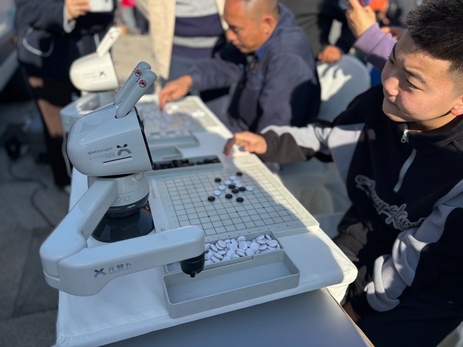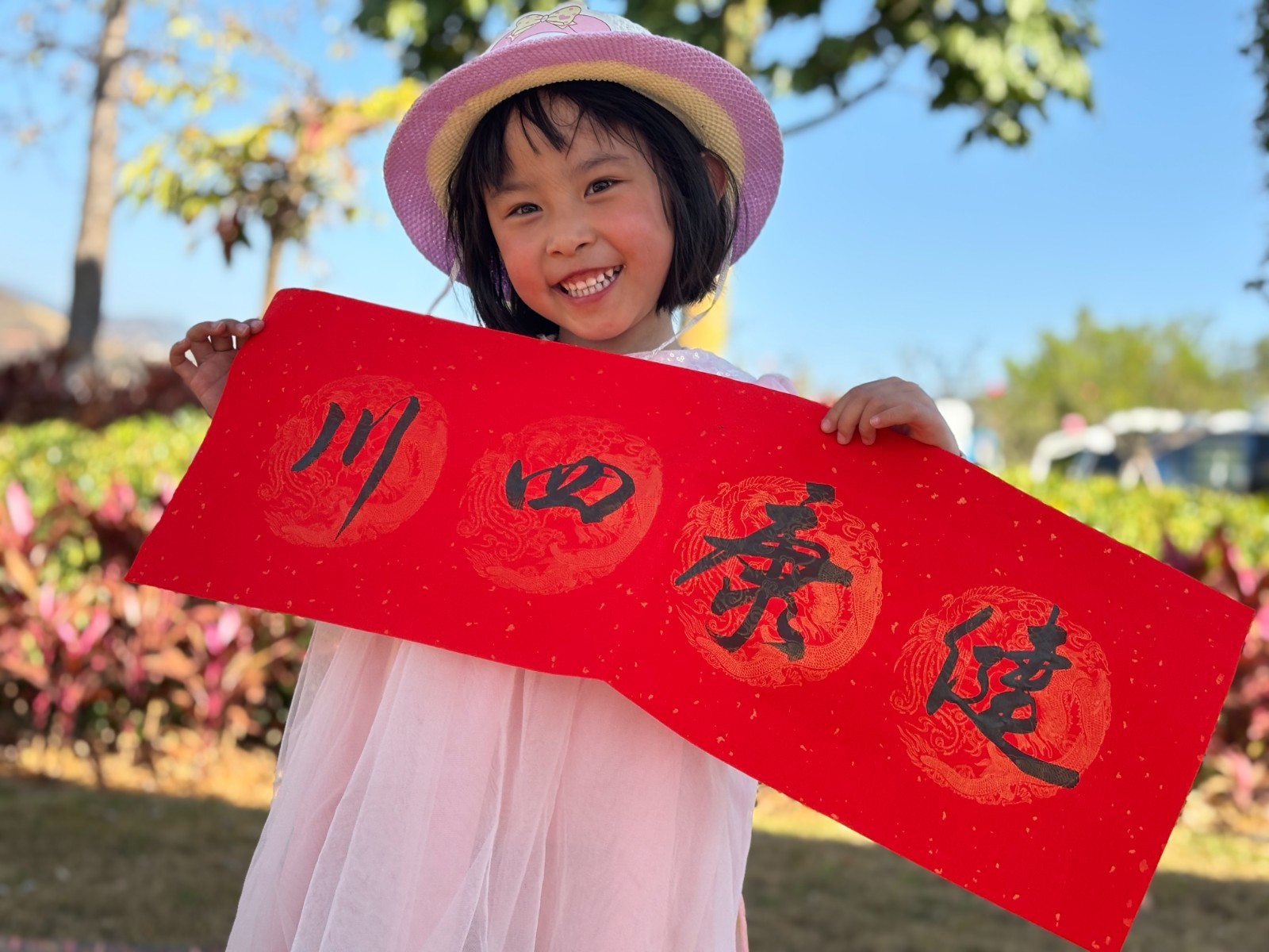 广场上,四川清音等文艺表演引来阵阵掌声,来自省科协的机器狗熟练地表演拜年和比心,一群少年轮流与机器人下围棋,省文联的帐篷前排着长队,人们喜滋滋地等待书法家们写下火红的“福”字和春联。