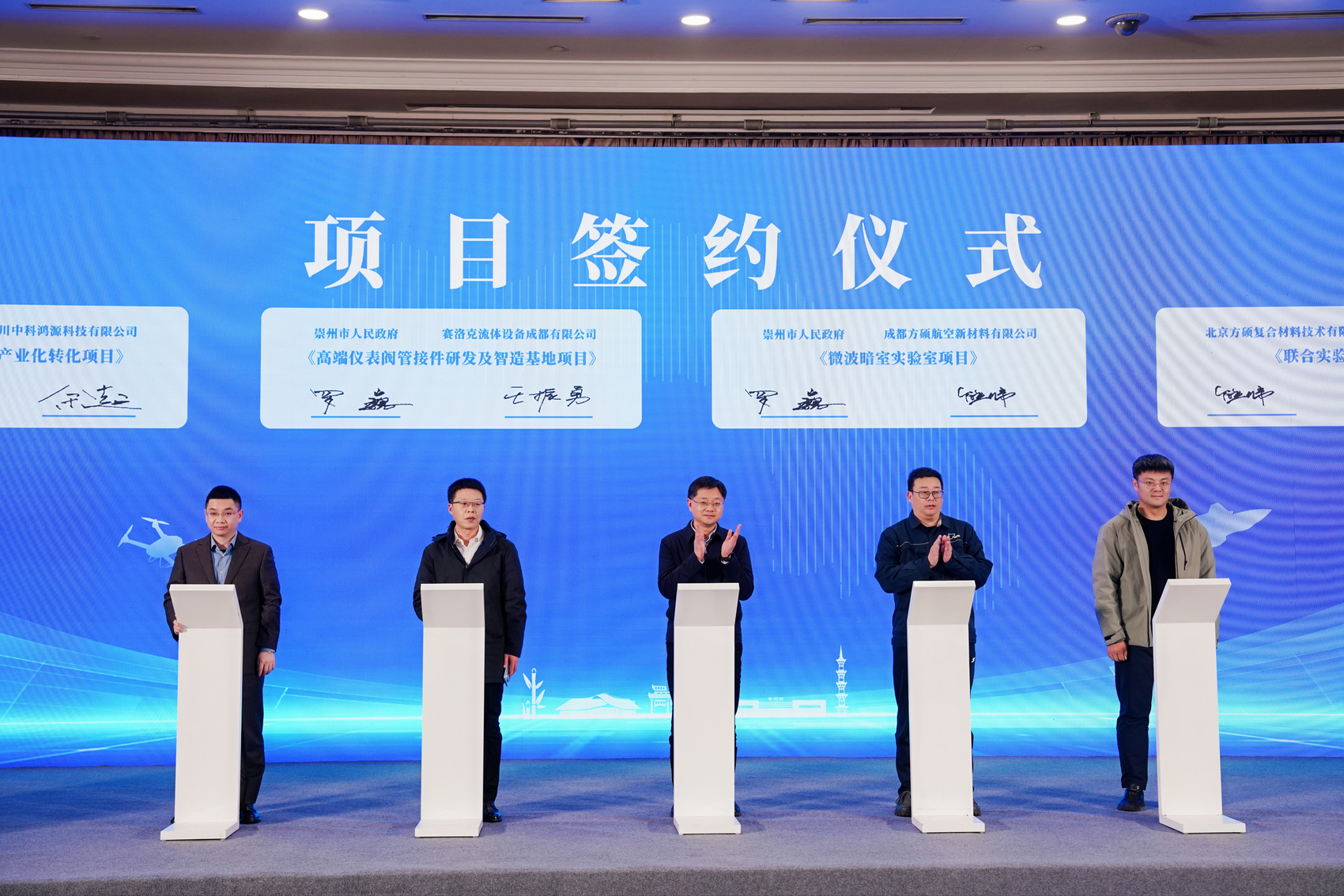 会上同步举行了项目签约仪式。四川崇州经济开发区管委会与四川中科鸿源科技有限公司、东华大学、成都方硕航空新材料有限公司、赛洛克流体设备成都有限公司签署合作协议,将在技术研发、成果转化、产业协作等领域深化合作,旨在进一步补强本地产业链。