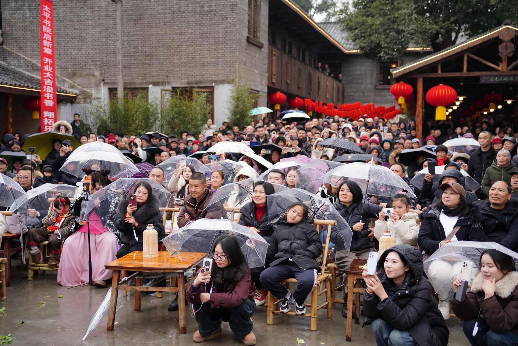 细雨温润,挡不住老街的烟火升腾。2月8日下午,成都市新津区太平老街人声鼎沸,彩伞如花。随着川渝文化名人“李伯伯”——李伯清的登台助阵,筹备已久的太平书院正式开门迎客。