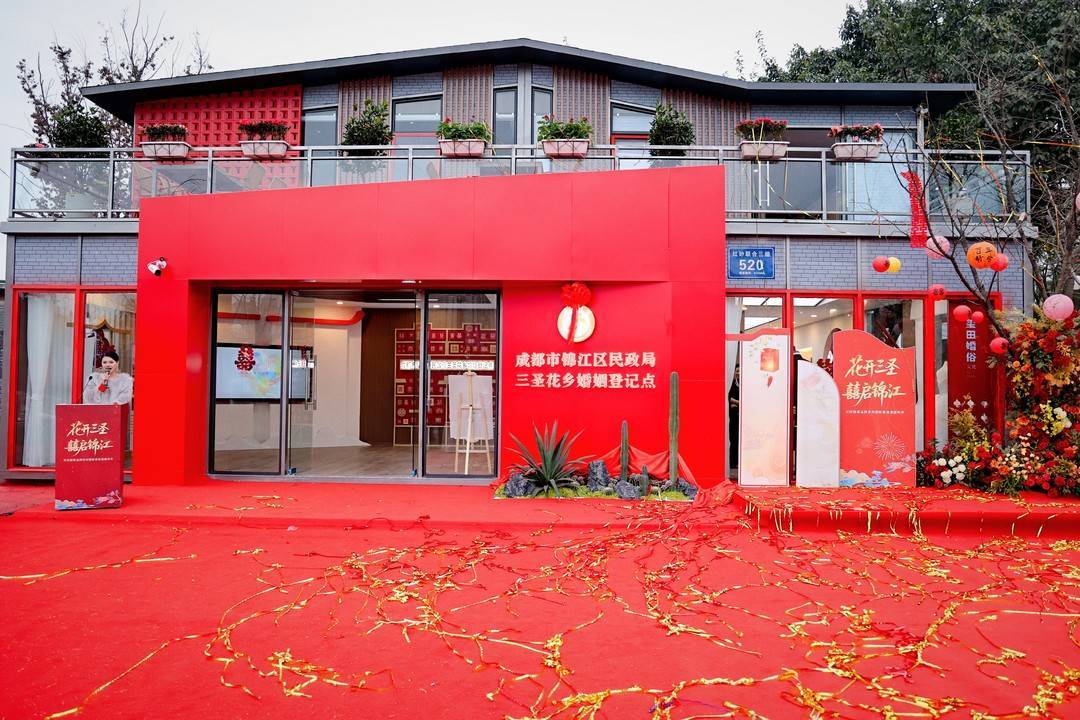 春风送暖,花开有信。2月7日,成都市锦江区三圣花乡景区内洋溢着一片喜庆氛围。“花开三圣·囍启锦江”红砂囍事品牌发布暨新春浪漫嘉年华活动在此举行。活动现场,“红砂囍事”IP正式发布,同时揭幕的还有三圣花乡“囍事堂”公园式婚姻登记点,标志着成都首个融合花乡生态与婚俗文化的公园式婚姻登记场所正式启用,为“蓉城囍事”幸福版图再添一处浪漫地标。
