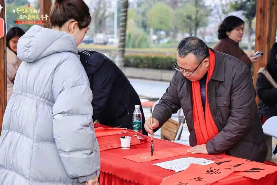 文化表演环节,来自花桥街道8个村(社区)的文艺队伍轮番登台。拐杖舞俏皮可爱,扇子舞优雅端庄,赢得观众阵阵掌声。古筝演奏,书法挥毫也吸引不少游客驻足观看,现场洋溢着浓浓年味。