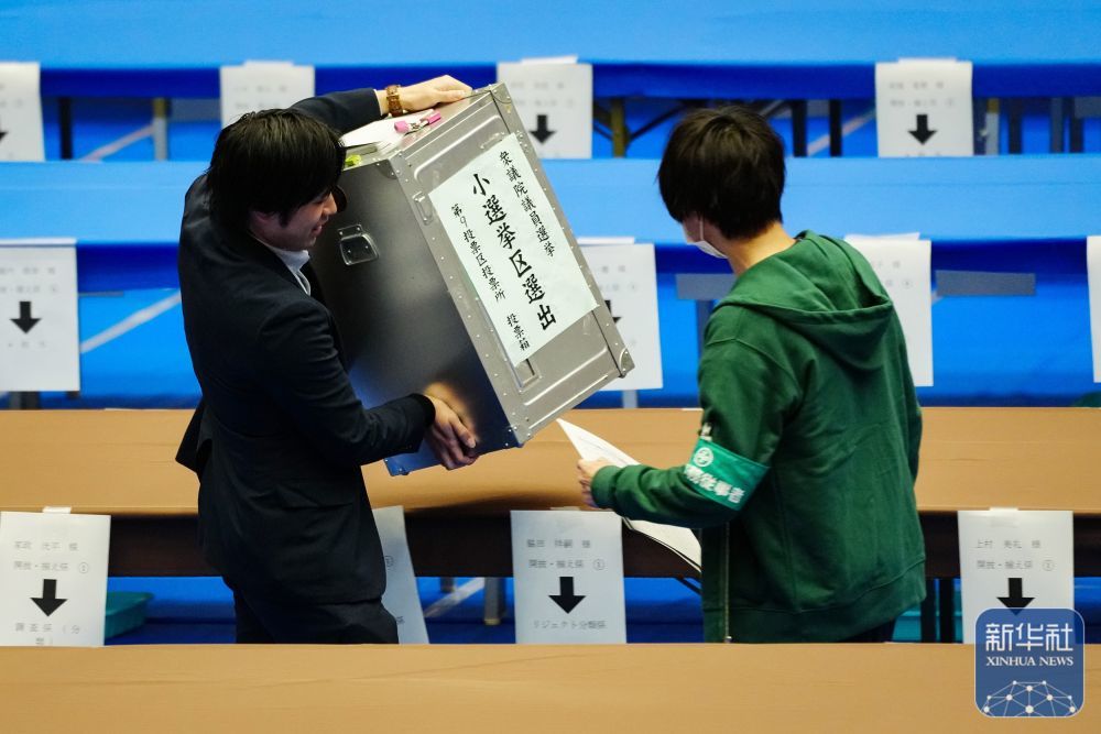 2月8日,在日本东京,工作人员在一处计票站内打开投票箱。新华社发