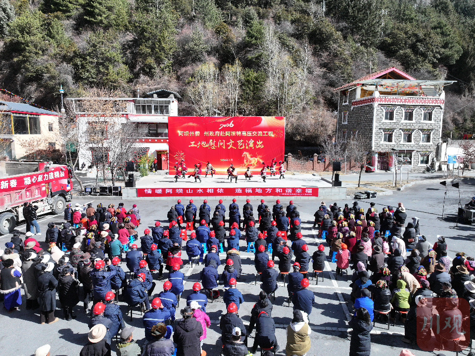 新春的脚步临近,在平均海拔超过3600米的四川省理县米亚罗镇胆杆村,寒风凛冽。2月9日,阿坝1000千伏特高压变电站施工现场,大型机械依旧轰鸣运转,一片热火朝天。直到几辆满载乐器与演出服装的车辗过碎石路缓缓驶入。来自阿坝州民族歌舞团的演员们穿过山路,为仍坚守一线的国网四川电力建设者,带来了一场迎春慰问演出。