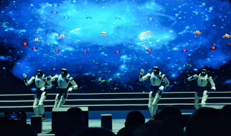 压轴节目《同行同往·共赴新程》将现场气氛推向高潮,无人机阵列腾空而起,与地面机器人方阵的灯光舞步交相辉映,吸引现场观众纷纷举起手机拍照留念。据悉,新春期间沐川还将开展系列民俗巡游,拜年队、腰鼓队、狮子灯队、高笋莲箫队等将从文化广场巡游至醉氧天街,配以变脸吐火、打铁花等非遗技艺展演。(代玉巍)