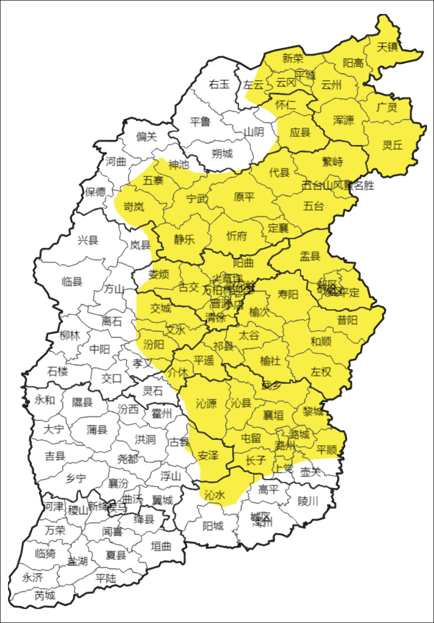 山西省气象台2026年02月09日15时25分发布道路结冰黄色预警,预警区域:大同市、朔州市、忻州市、太原市、吕梁市、晋中市、阳泉市、长治市、临汾市、晋城市。