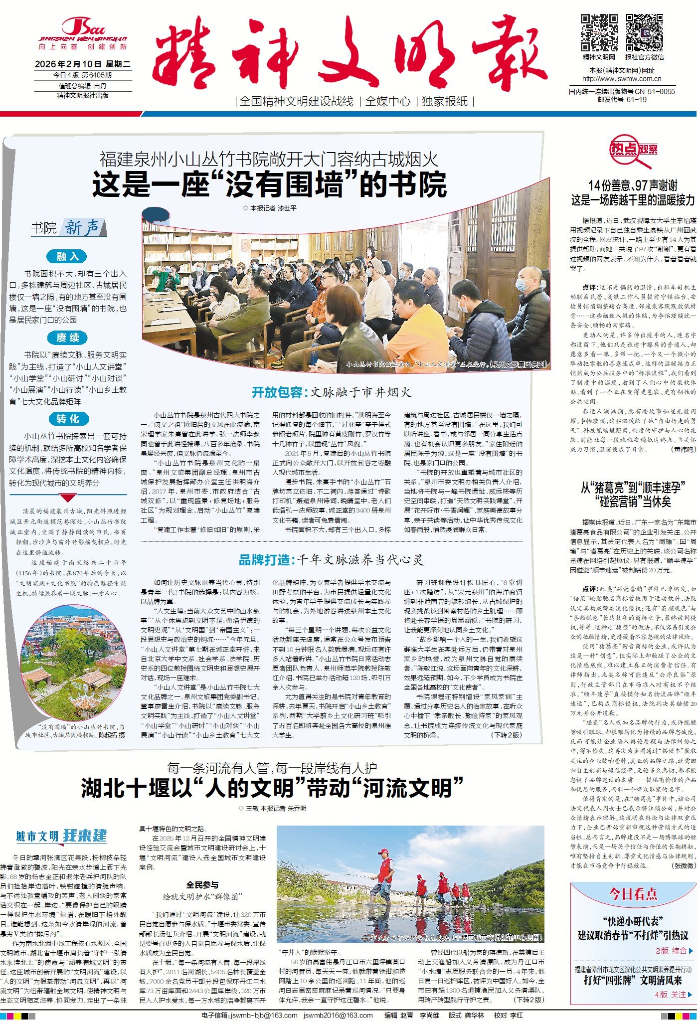 近日,武汉视障女大学生李怡瑾用视频记录下自己独自乘坐高铁从广州回武汉的全程。一路上至少有14人为其提供帮助,而她一共说了97次“谢谢”。另据报道,近日,广东一家名为“东莞市猪葛亮食品有限公司”的企业因谐音名人引发关注,“顺丰速孕”因碰瓷“顺丰速运”被判赔偿20万元。这两件事你怎么看?到今日1版看观点。