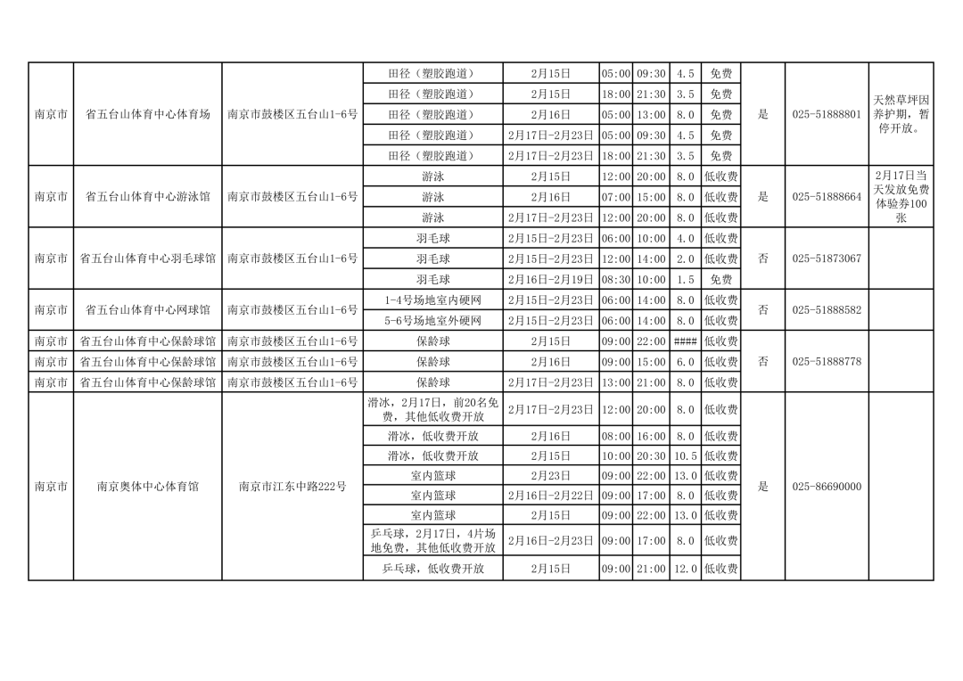 江苏多家公共体育场馆