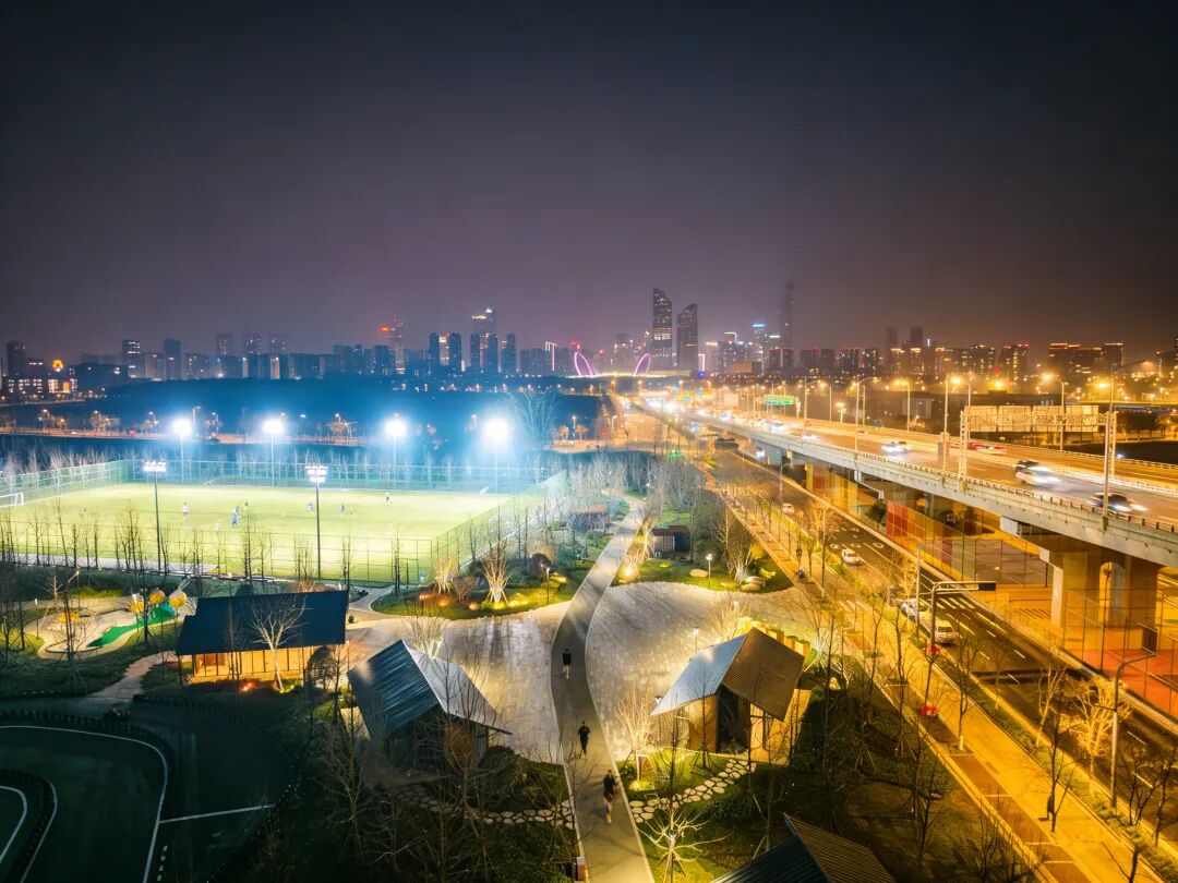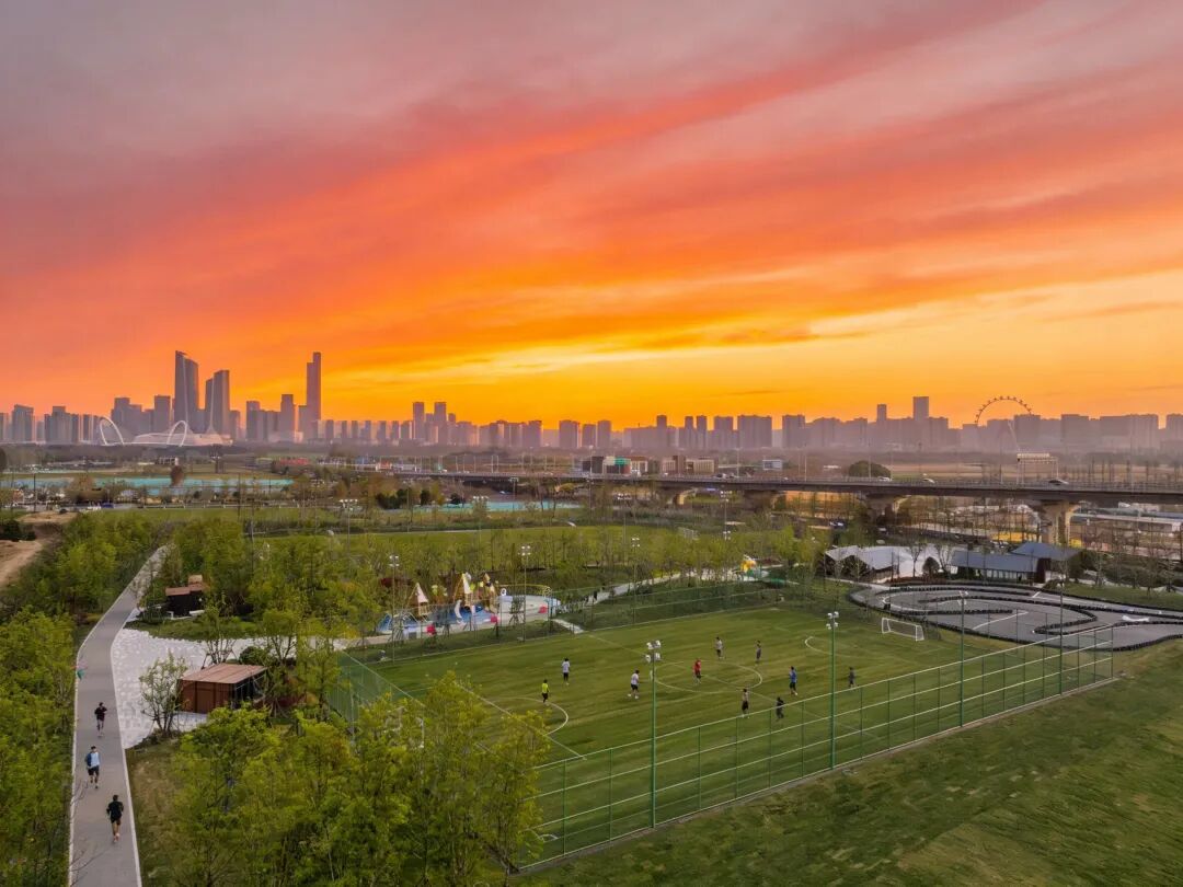 公园以“绿茵燃热血,林间自逍遥”为核心定位,F₄的命名,既寓意着FOOTBALL FERVOR(绿茵热血)的运动内核,也承载着FOREST FUN(林间野趣)的生态基因,以“森林球场”为设计亮点,打破了传统体育场地的单一布局,将运动设施与自然景观有机融合,实现了“运动在林间,休闲伴江风”的独特体验,既盘活了区域闲置空间,也践行了城市微更新的理念,更与南京近年来着力打造的嵌入式运动场地建设思路高度契合,为建设“长江国际体育岛”的蓝图添上浓墨重彩的一笔。