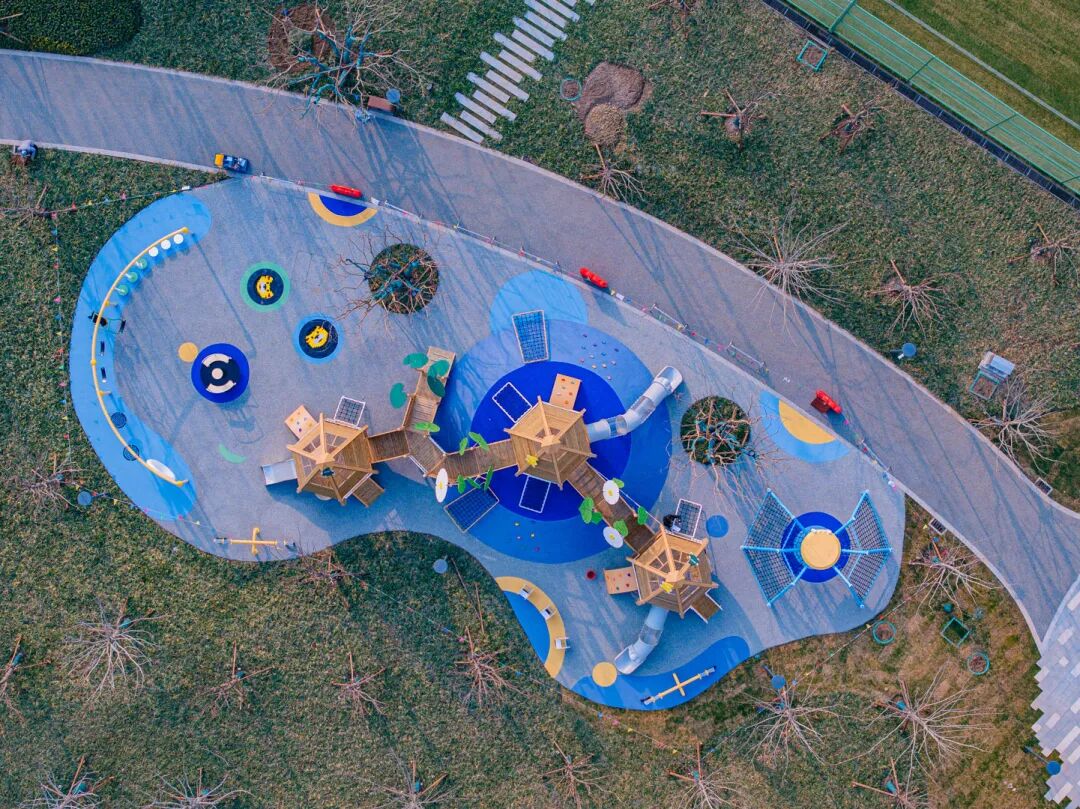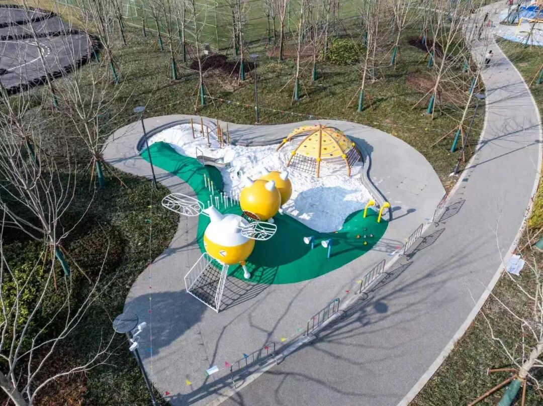 公园精心规划了家庭友好区域,在自然的怀抱里,为孩子们打造了一方释放天性的快乐星球。在「星际木屋」探索区,孩子们化身小小探险家,在木构与光影间穿梭,每一次攀爬都是勇气的进阶,每一声欢笑都是探索的勋章。而在「萌趣蜂巢」撒野区,没有刻板的游戏规则,只有自然生长的欢声笑语。