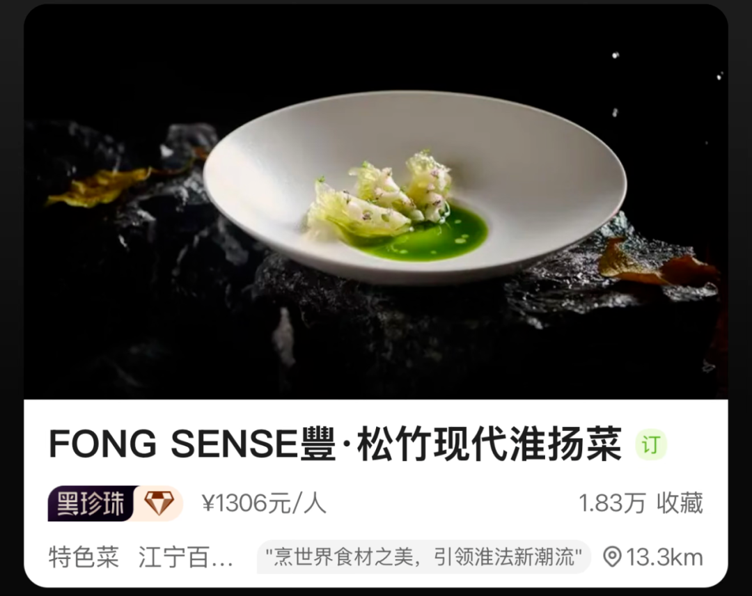 黑珍珠餐厅是“美团”与“大众点评”从2018年开始发布的首份提出中国美食标准的美食指南,以烹饪出品、服务环境、传承创新三个方面对入选餐厅进行评价,最后上榜餐厅由众多匿名评委通过匿名造访、打分、遴选而出。