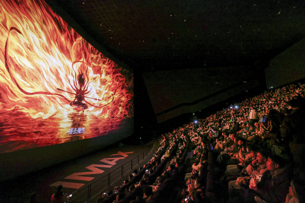 2025年2月25日,观众在贵州贵阳越界影城观看电影《哪吒之魔童闹海》。新华社记者 欧东衢 摄