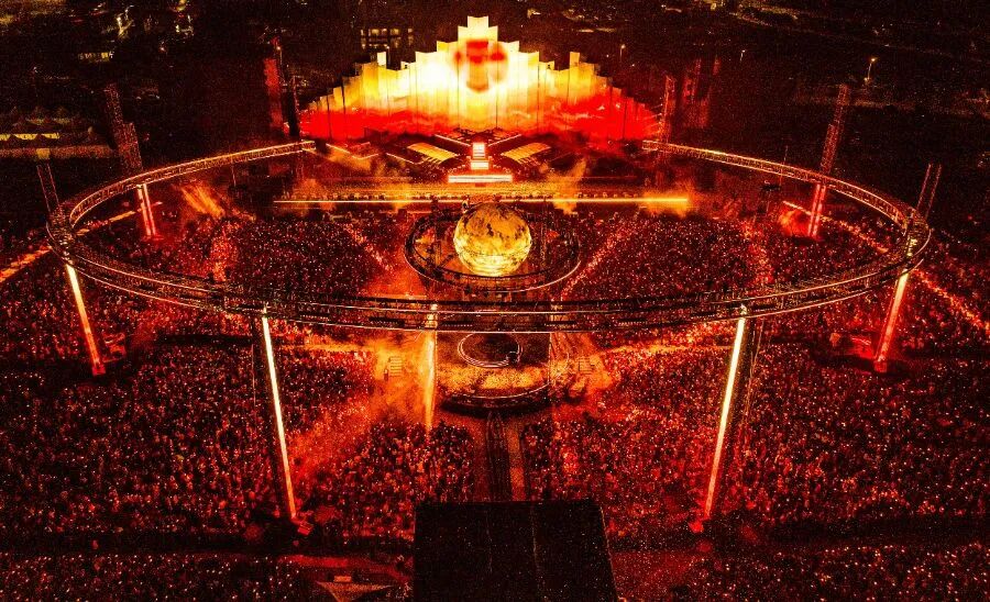 例如在南京场举办前,华晨宇团队在一片空地上历时数月,完成了从基建、绿化到舞台搭建的全部工程,最终形成一个包含演出、视觉与互动功能的定制化场地。而在佛山站的演出中,舞台上方设置了一个直径约100米的巨型环形装置,被称为“火星巨环”,与主舞台相互呼应。