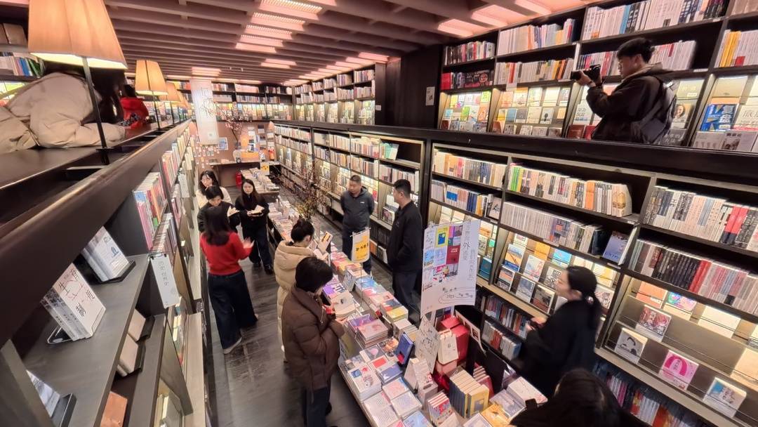 一楼,有人面前摊开一本书,手边一杯咖啡正袅袅升起热气;有人桌上还摆着加热的火锅,放下餐筷与好友低声交谈着……沿楼梯缓步而上二楼,靠窗的阅读区几乎满座,埋头看书的、对着窗外发呆的,以及在书架间轻轻走动的人,他们构成了另一番静谧光景。
