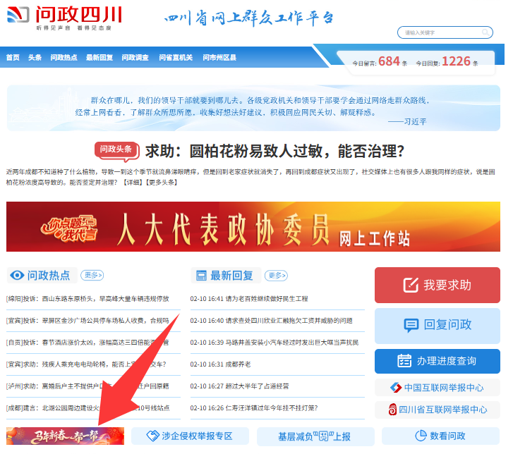 ♦打开“问政四川”网站:https://ly.scol.com.cn/,点击“马年新春帮一帮”图片进行留言。