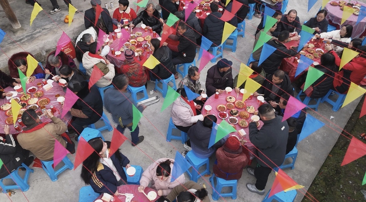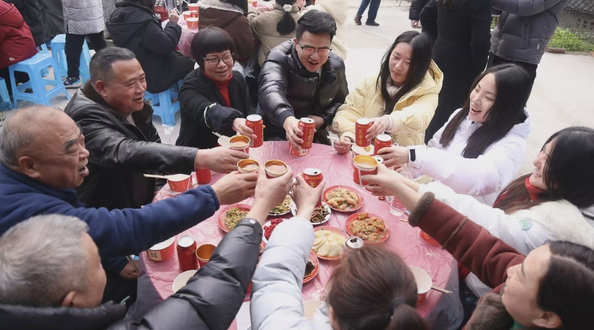 席间,乡亲们围坐一堂、举杯同庆,畅叙家长里短,聊在外打拼的酸甜过往,谈家乡发展的喜人变迁,话新年生活的美好蓝图。
