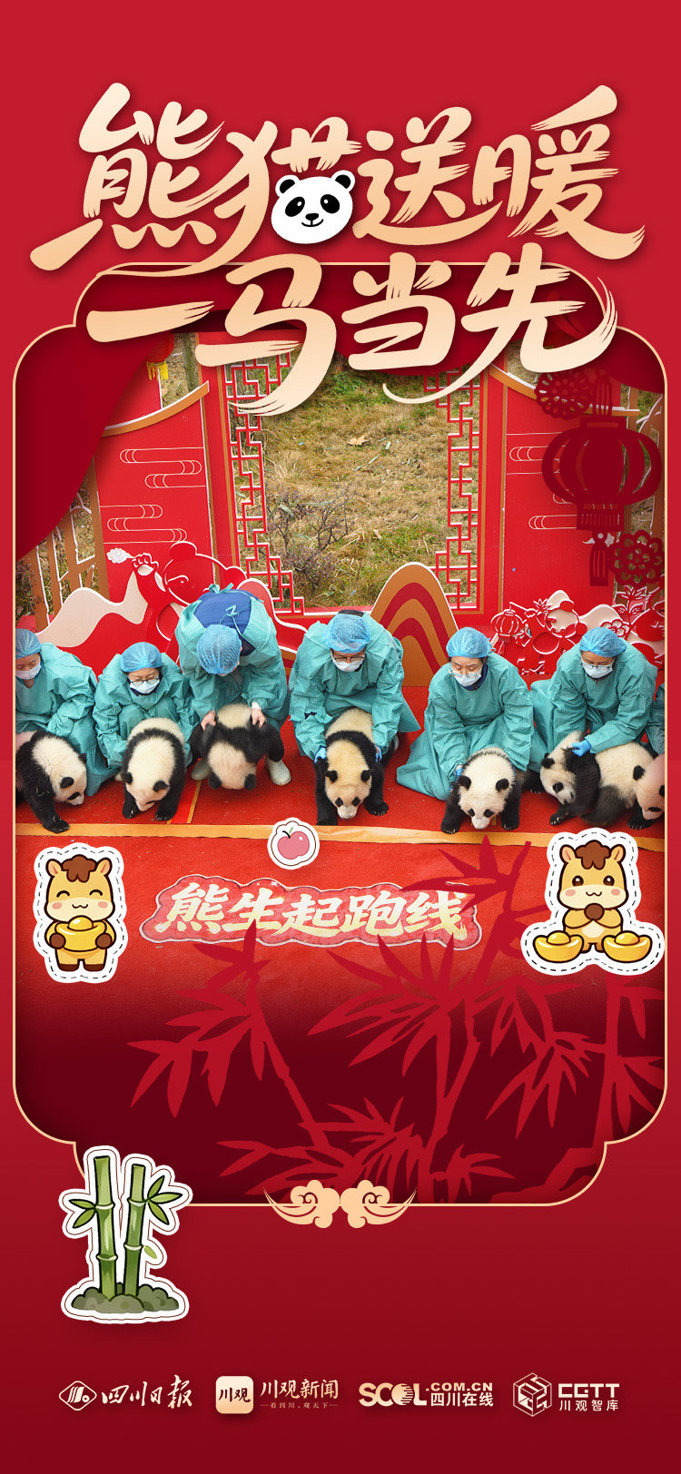 “熊猫抱春,马到福来”“萌宝贺岁,马年顺遂”“熊猫送暖,一马当先”……当圆滚滚的“团子”遇上喜庆吉祥的祝福语,会碰撞出怎样萌动人心的画面?