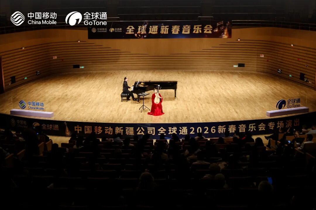 2月6日,中国移动通信集团新疆有限公司(以下简称“新疆移动”)在乌鲁木齐大剧院·音乐厅成功举办全球通新春音乐会。本次音乐会以“臻享国乐夜·移韵天成”为主题,特邀青年琵琶演奏家蒋镆潼与钢琴家张诗乐联袂演出,通过琵琶与钢琴的对话,呈现出一场高品质艺术展演。该场音乐会不仅展现了新疆移动在“科技+文化”领域的创新探索,也为广大用户提供了沉浸式、高品质的服务体验,进一步彰显了全球通品牌的温度与内涵。