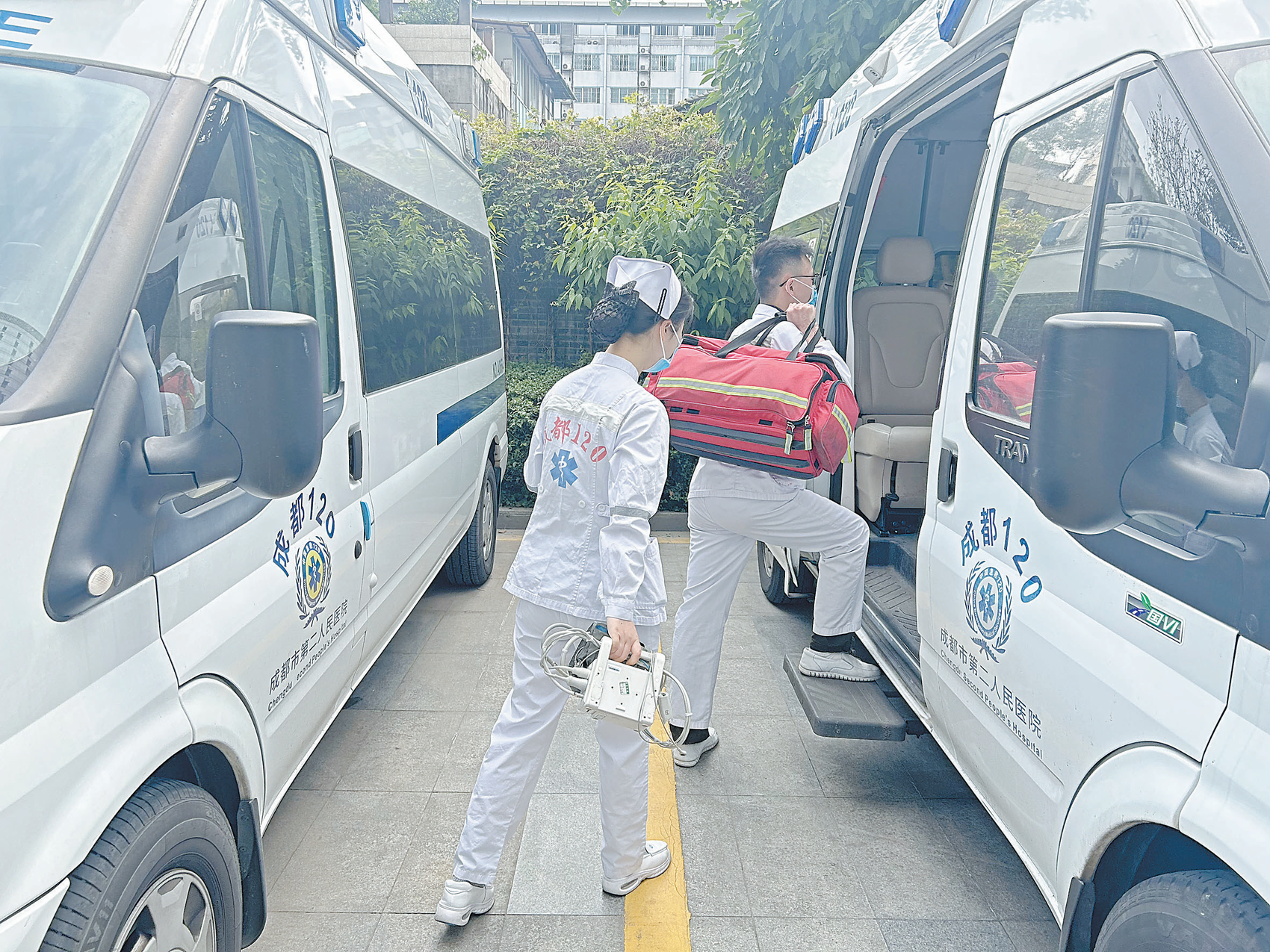 成都市第二人民医院急诊科,医生接到任务即刻奔赴一线。(李劲松 摄)