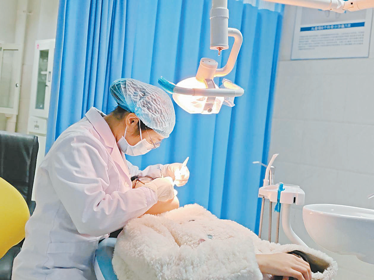 邛崃市妇幼保健院口腔科,医师为患者诊疗。(宋华 摄)