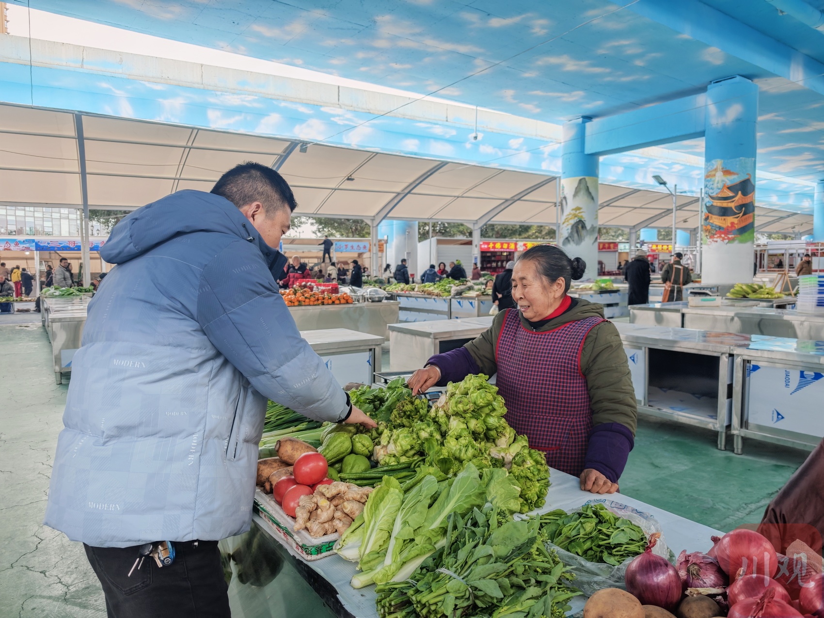 原先在路边摆摊的附近村民宋竹林,也从街边搬到了市场内,有了自己固定的卖菜摊位,“不用日晒雨淋,厕所、供水这些设施也齐全,做生意更安心了。”