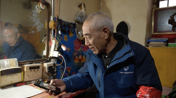 冯开平翻看小孙子的视频。新华社记者 张哲 摄