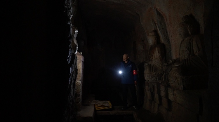 守庙人的日子,冯开平一守就是30年。寺中14个洞窟、500余尊摩崖造像,他都如数家珍,不知巡查了多少遍。他常常给这些自己口中的“老人家”打扫灰尘。