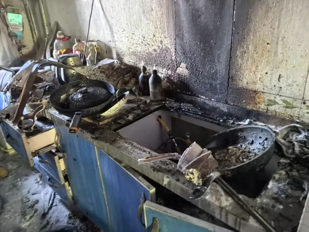 引燃了油烟道和橱柜